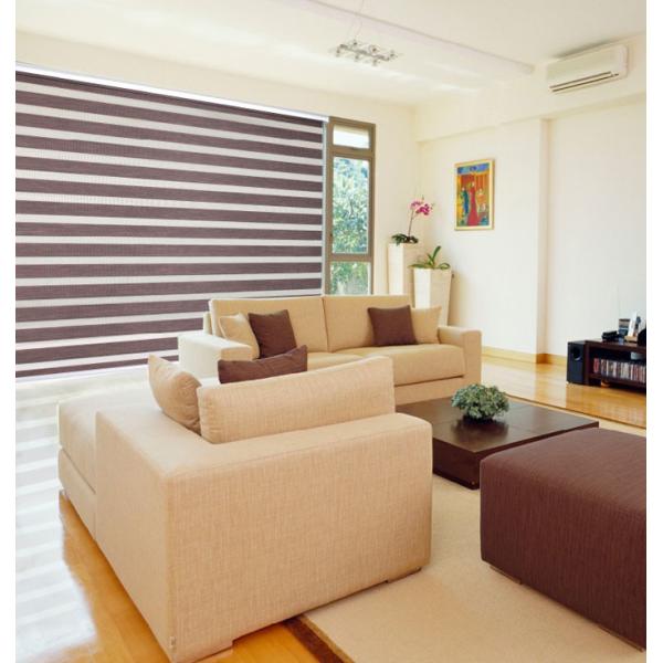 100% polyester fabric with strip design sheer and solid can adjust the view you want. also it is can adjust
